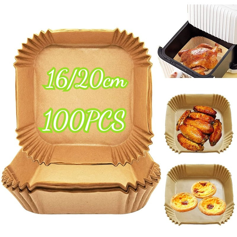 50/100Pcs Air Fryer Disposable Paper Air Fryer Accessories Square Round Oil-proof