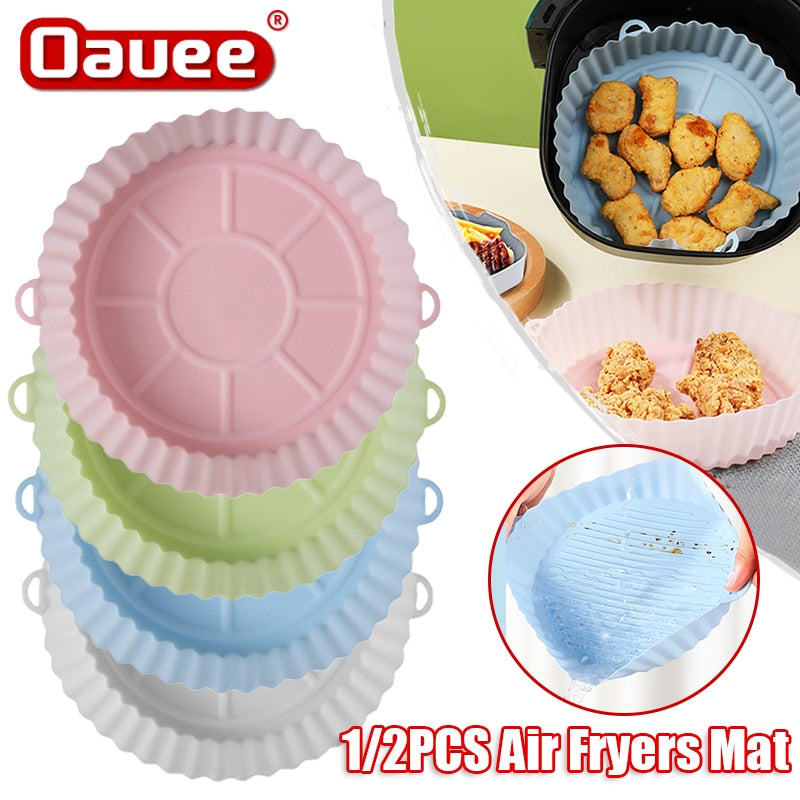 AirFryer Reusable Pot Silicone Easy To Clean Oven For Round Liner Pizza Chicken Plate Grill Nonstick Pan Mat Air Fryer Accessories