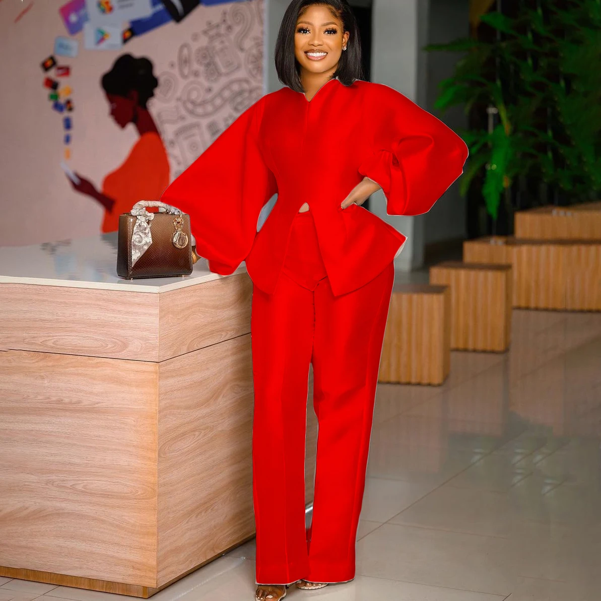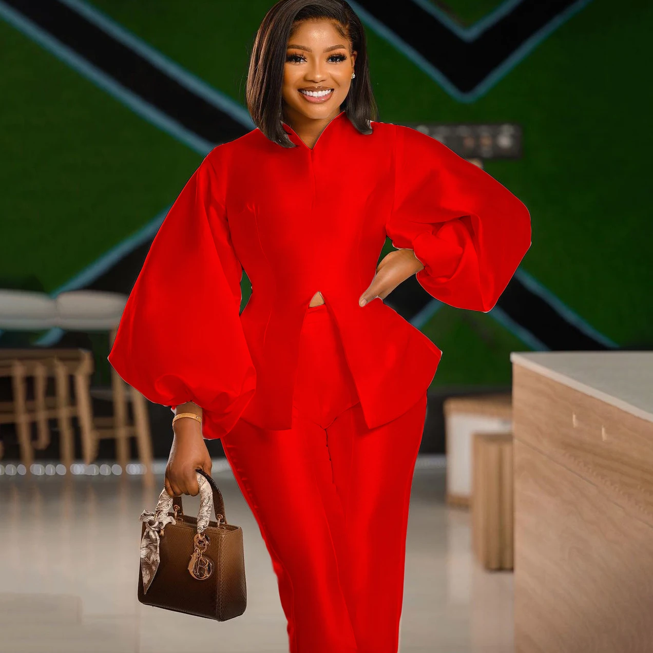 Autumn/winter 2021 new temperament commuter leisure long sleeve jacket trousers fashion suit two-piece.