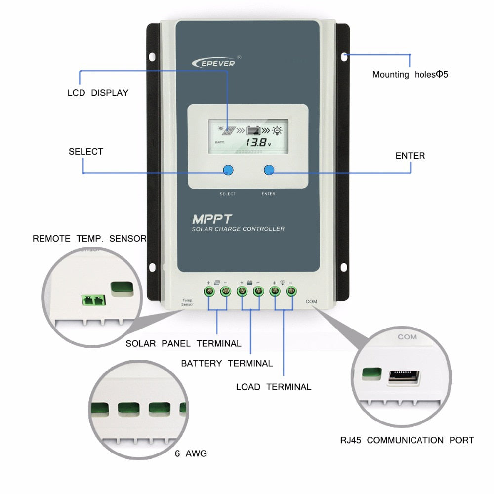 20A 30A 40A EP Solar MPPT Solar Charge Regulator 12V 24V LCD Display Wifi App EPEVER TRACER Charge Controller 2210AN 3210AN