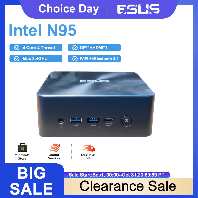 ESUS Mini PC Intel 11th Gen N95 N1000M WiFi6 Gamer Desktop