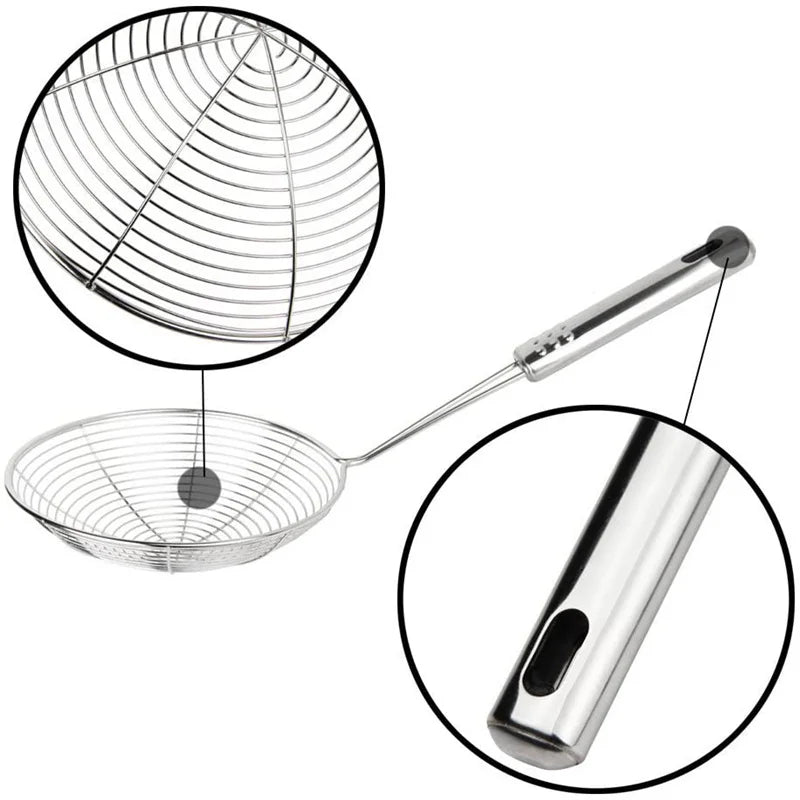 Wire Strainer: Concave mesh locks in food securely while releasing oil and other residues Ideal for frying foods such as chips, chicken thighs and scooping noodles, pasta, spaghetti, spaghetti, etc.