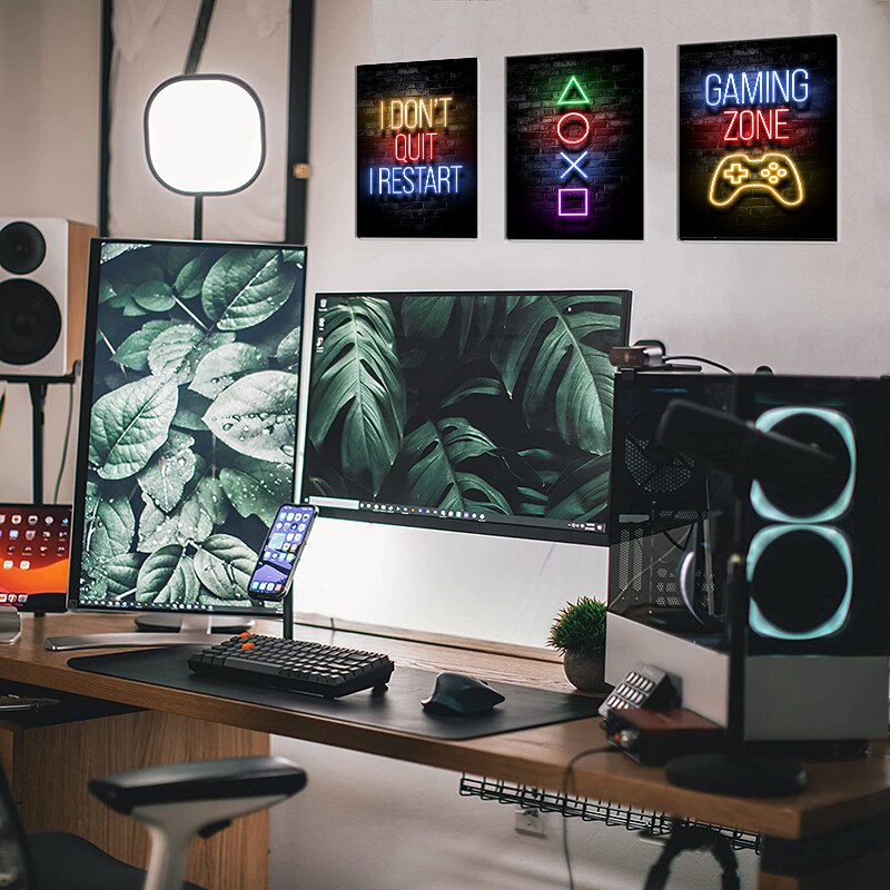 Nordic Gaming Gamer Quotes Art Posters and Prints Canvas Painting Wall Pictures for Boys Game Room Decor Home Decor (Not Neon)