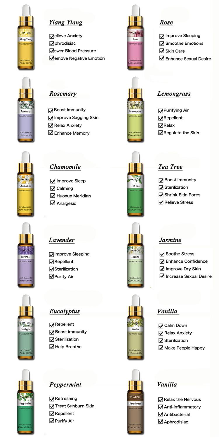1.10ml Pure Plant Extrat Essential Armatherapy Oils.