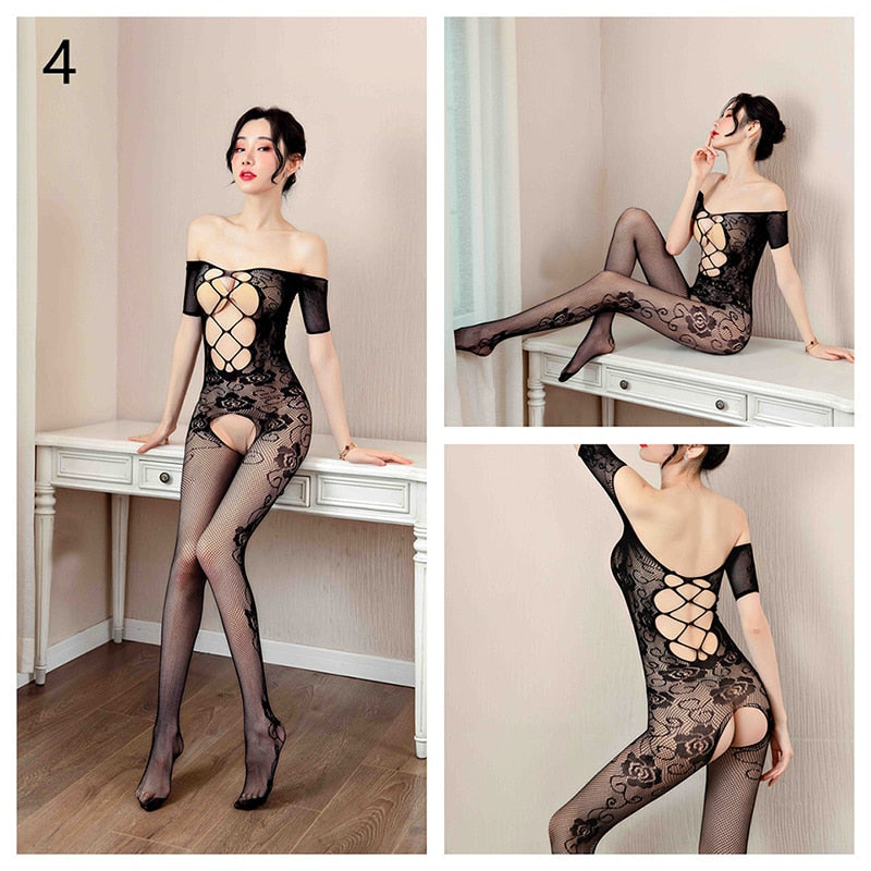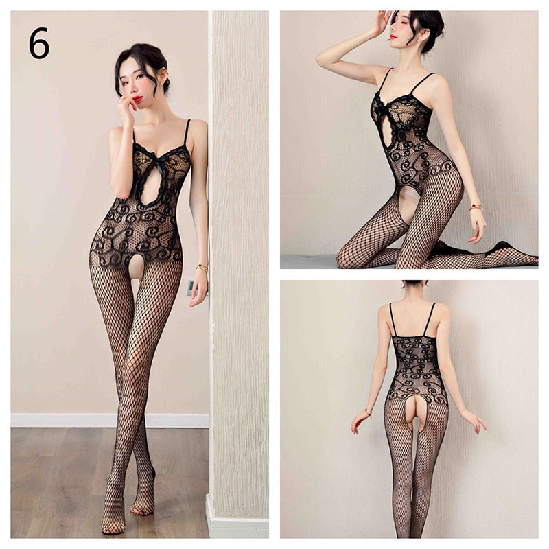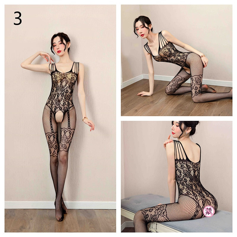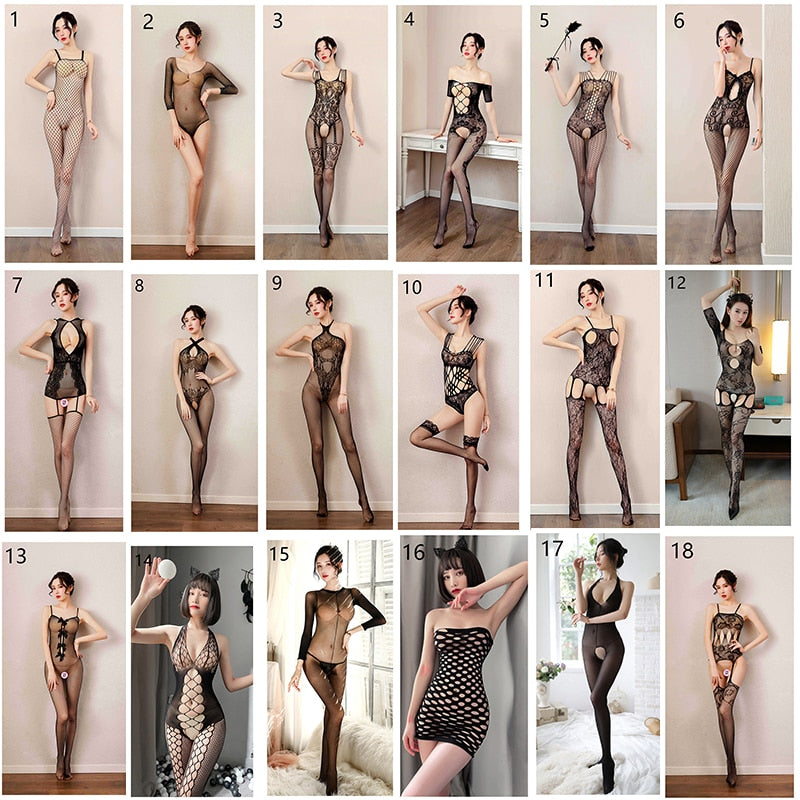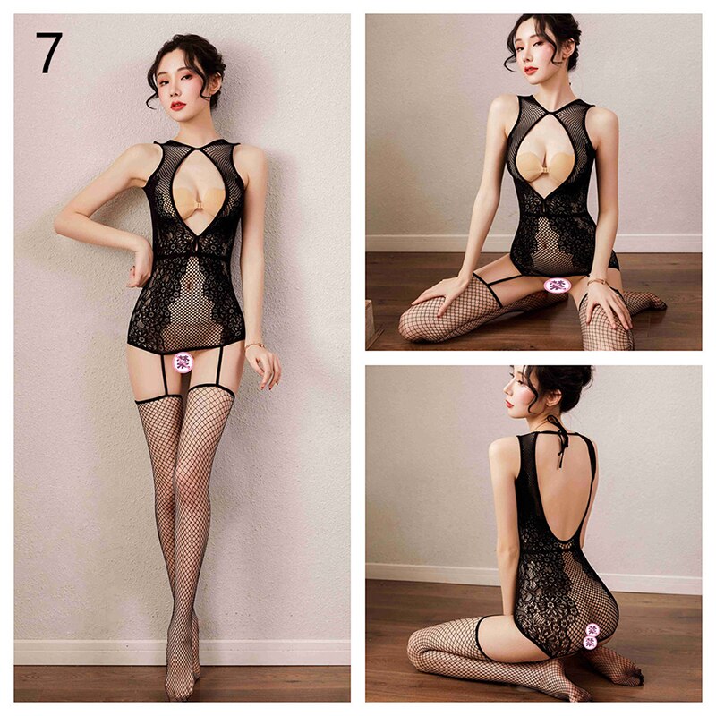 Sexy Lingerie Mesh Bodysuits Pornographic Movies Xxx Fishnet Crotchless Catsuit Babydoll Stockings Uniform Teddies Underwear Set