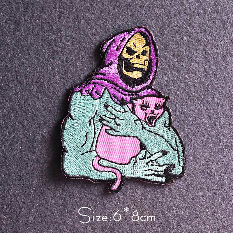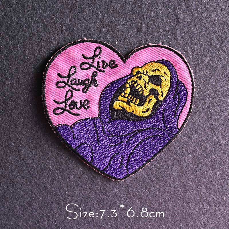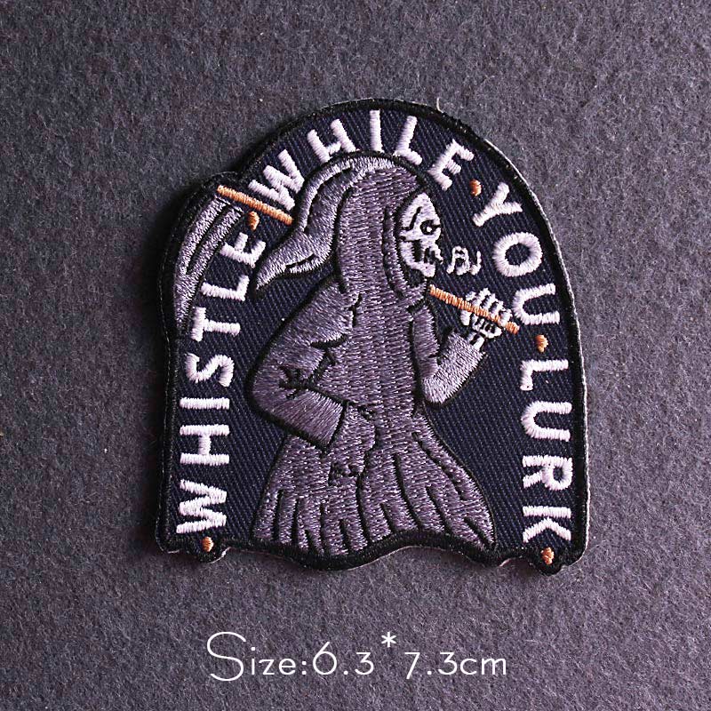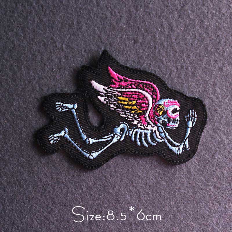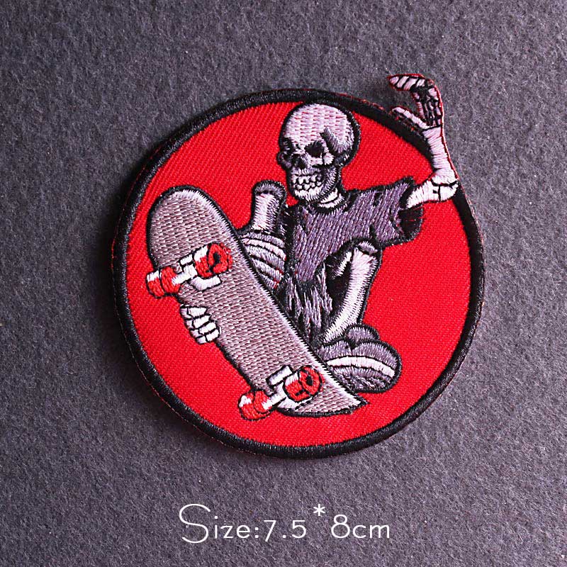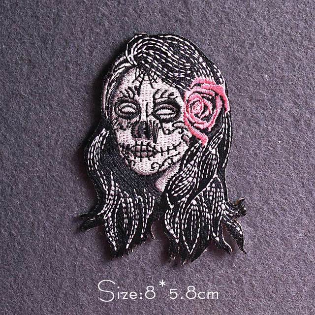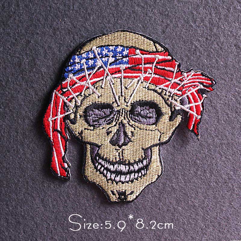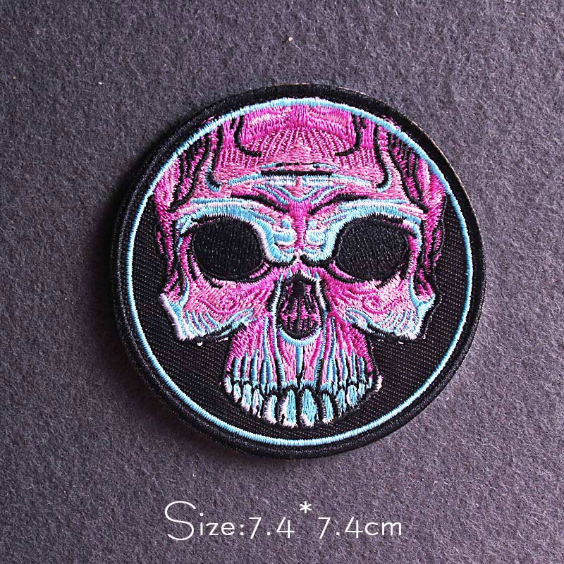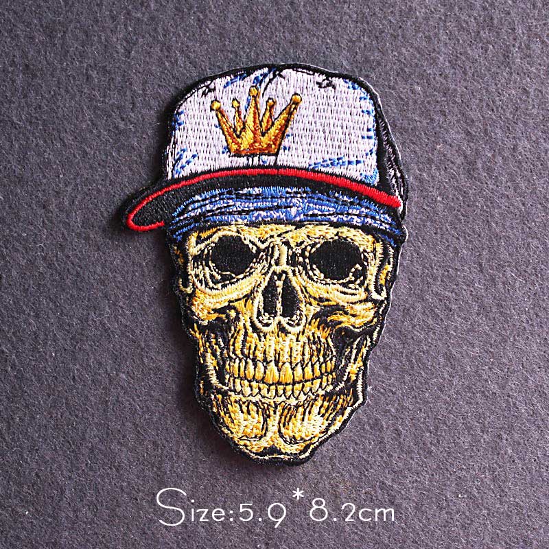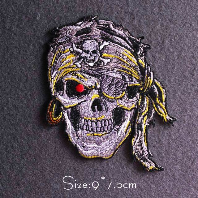Skull Punk Patch Embroidered Patch For Clothing Sewing Applique Iron On Patches For Clothes Skeleton Binoculars Patches Stripe