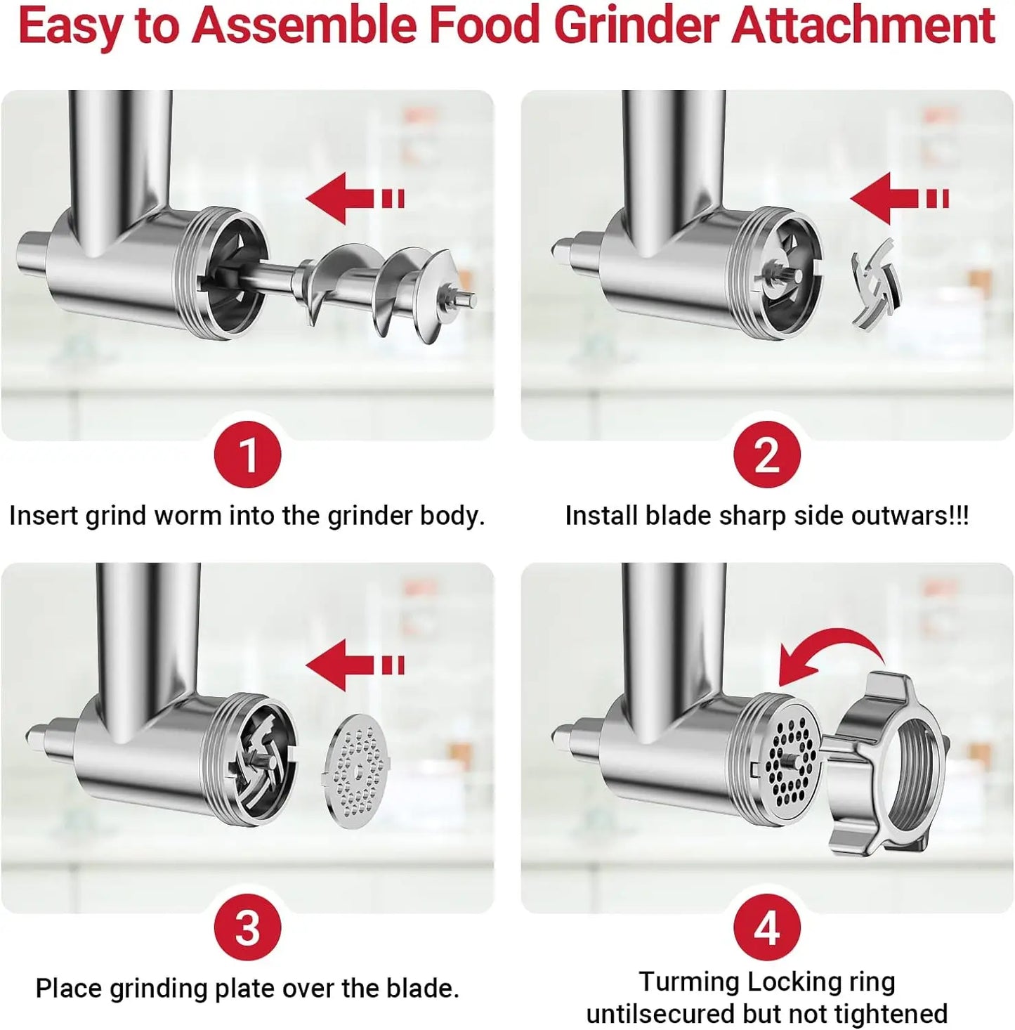 To use, simply attach the grinder to your KitchenAid Stand Mixer, select your blade, and start grinding. Clean with warm soapy water after use for longevity. Get ready to elevate your cooking experience with this must-have kitchen accessory!