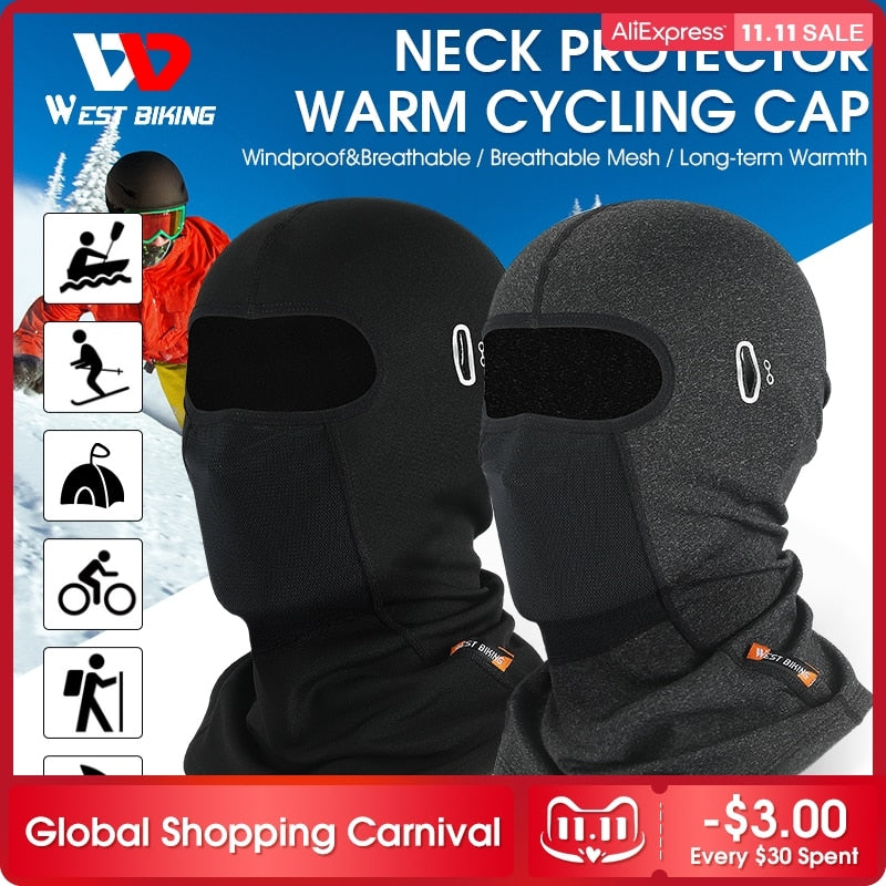 WEST BIKING Cycling Cap Winter Warm Running Scarf Balaclava Velvet Bike Full Face Cover Headwear Climbing Fishing Skating Hat